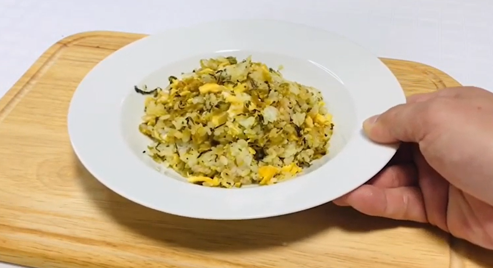 6. ある程度炒めたら、器に盛って高菜チャーハンの完成です。