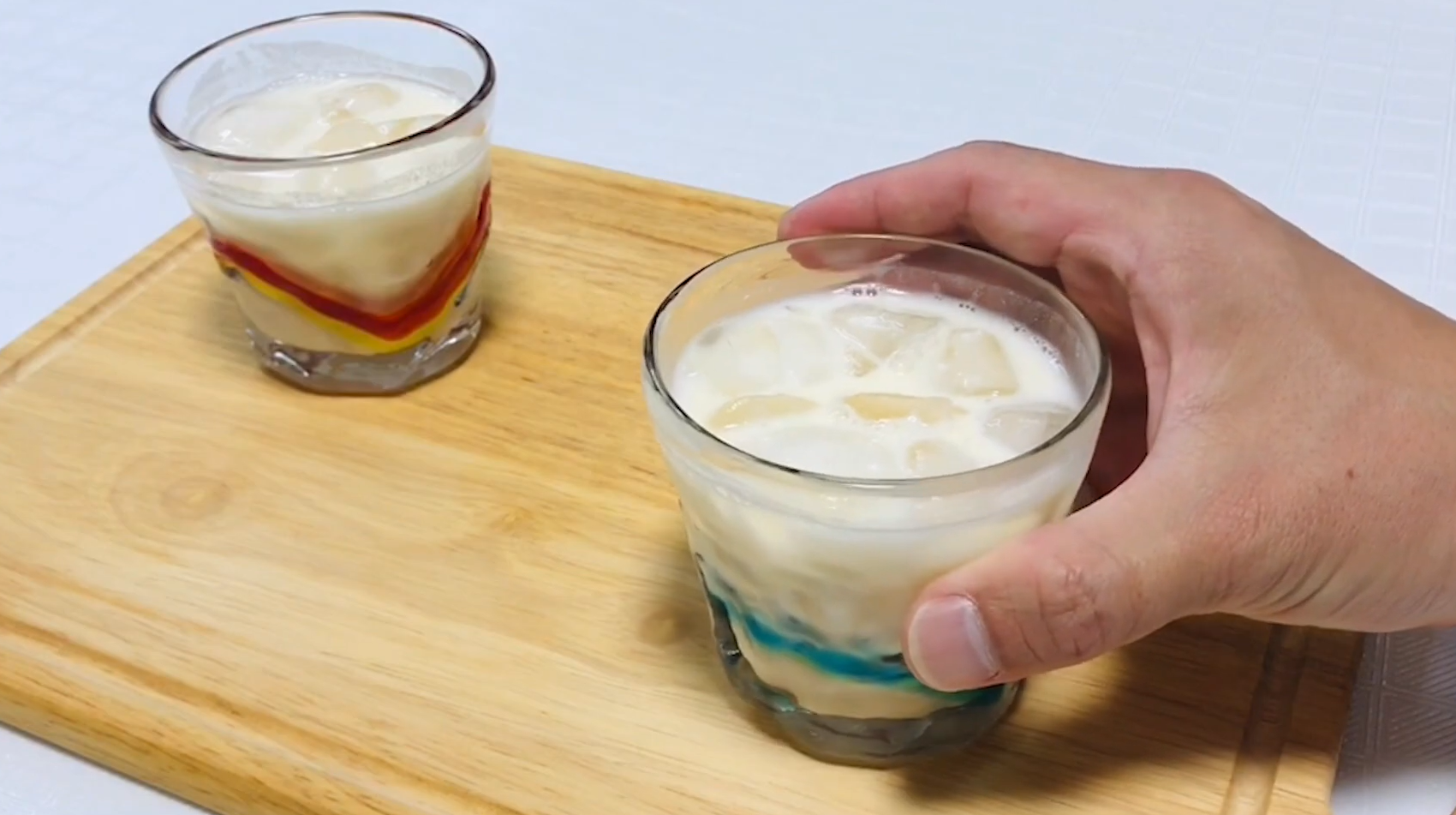 - 混ぜ合わさったらグラスに注ぎ、ラッシーの完成です。