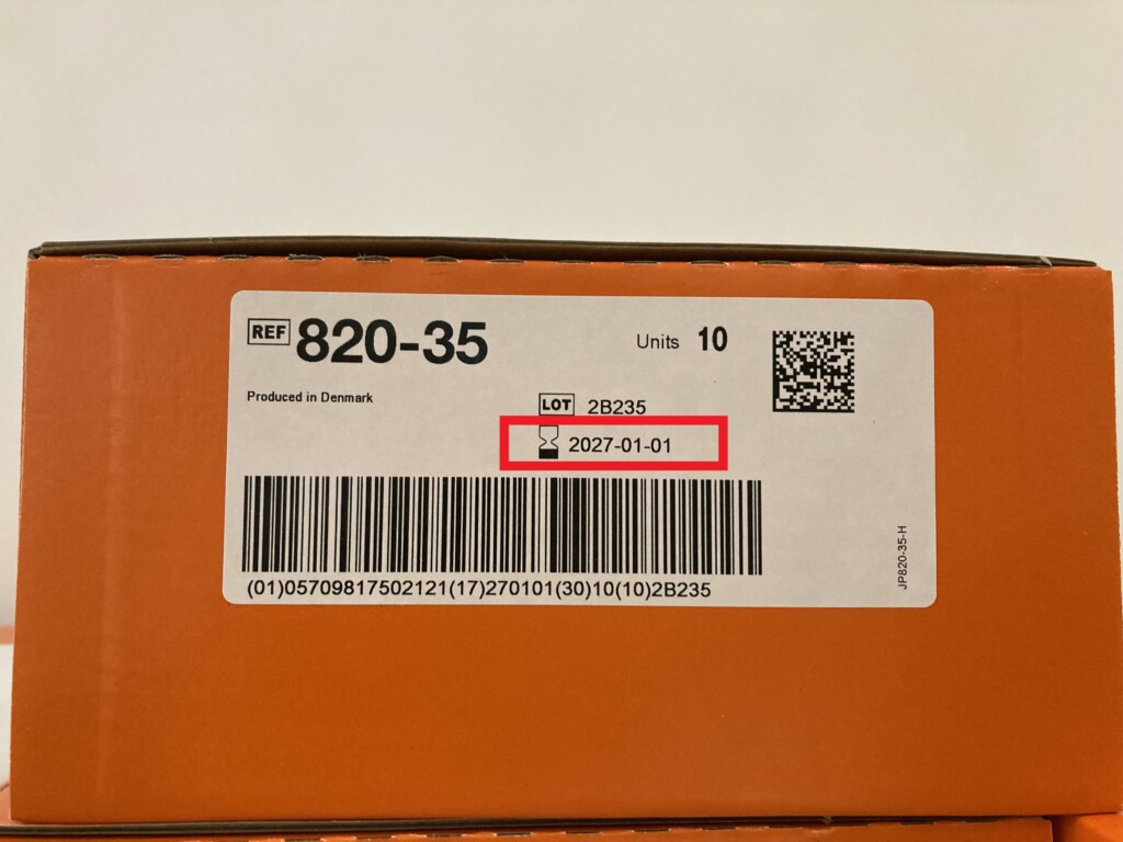 使用期限の表記は、装具メーカーによって『⏳』『使用期限』『有効期限』など様々ですが、写真のように製品箱に記載があります。