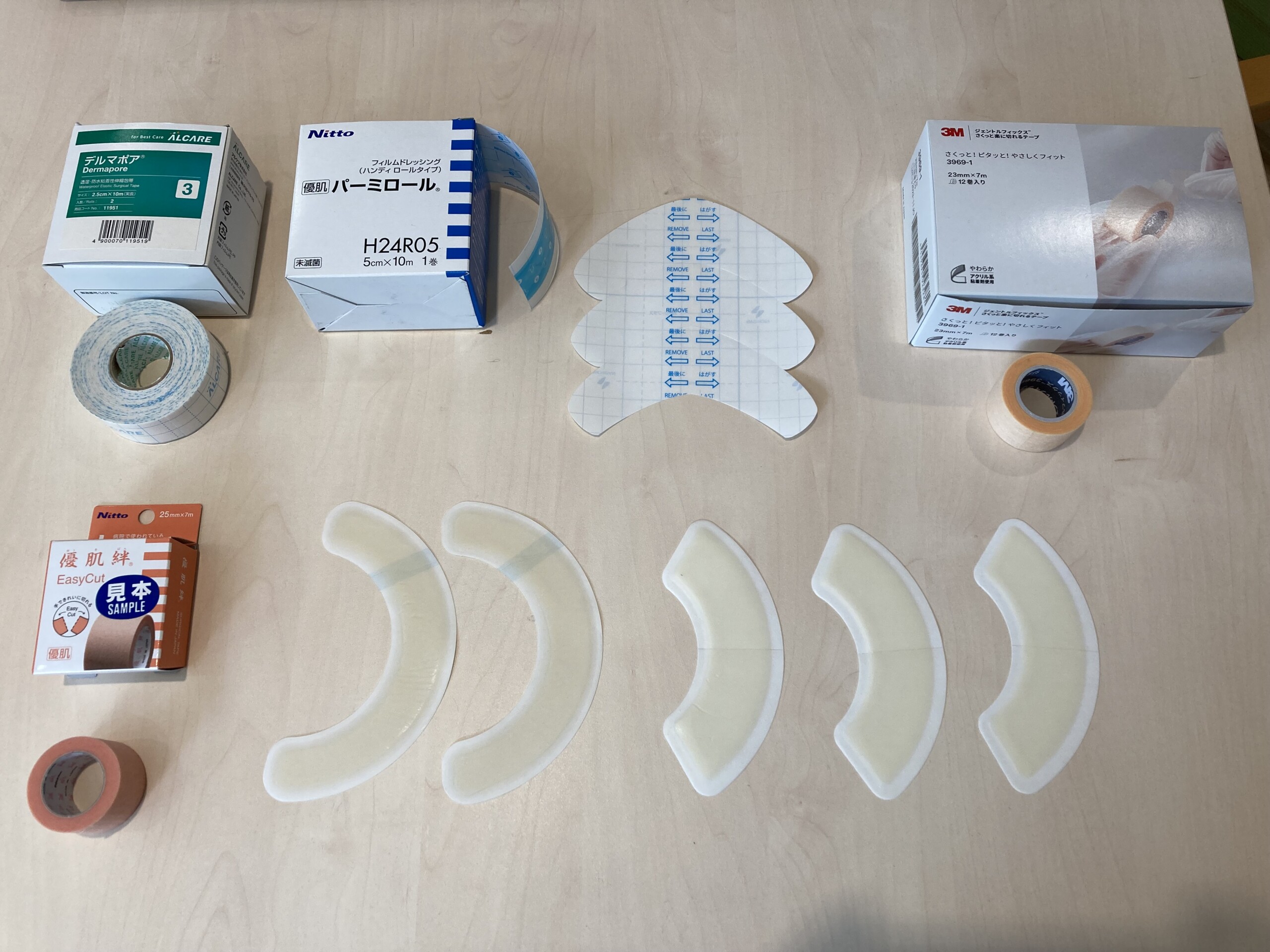 テープにはフィルムタイプや、不織布タイプ、シリコンタイプ、ハイドロコロイド材でつくられたものなどさまざまなものがあります。